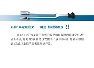 ◆初步筛查:神经功能体格检查工具包主要用于初步筛查患者的神经病变风险,特别适用于在初次接诊时对患者进行筛查。