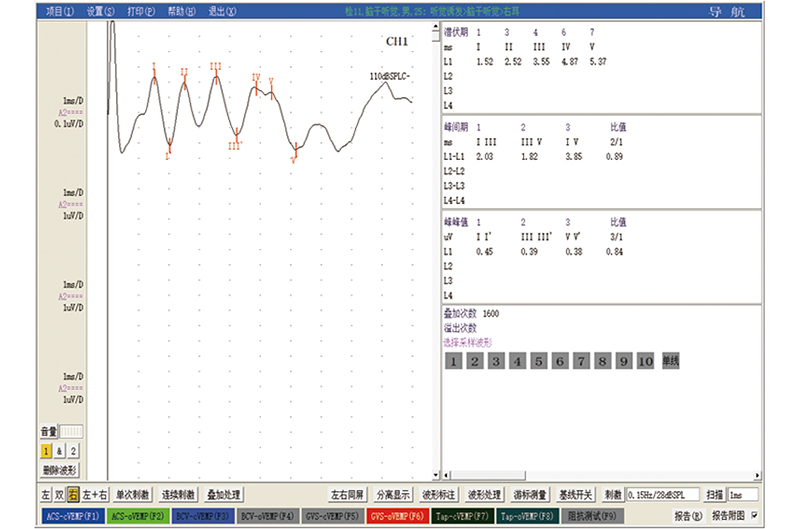 颈肌前庭肌源性诱发电位(CVEMP)眼肌前庭肌源性诱发电位(OVEMP)咬肌前庭肌源性诱发电位(mVEMP)前庭诱发项目可兼容气导骨导电刺激等多种刺激方式诱发